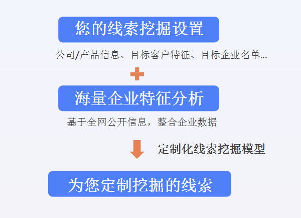 * 注:挖掘出的线索不同于广告带来的热线索,企业需要具备专业的跟进团队以及使用规范的销售动作进行跟进;线索挖掘结果受各因素影响不完全保证数量。