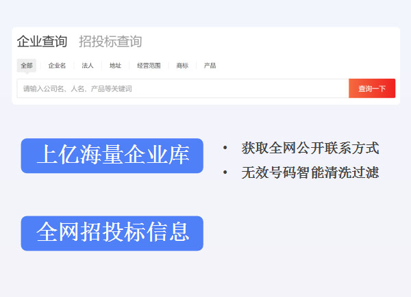 支持全行业企业信息、招投标信息查询