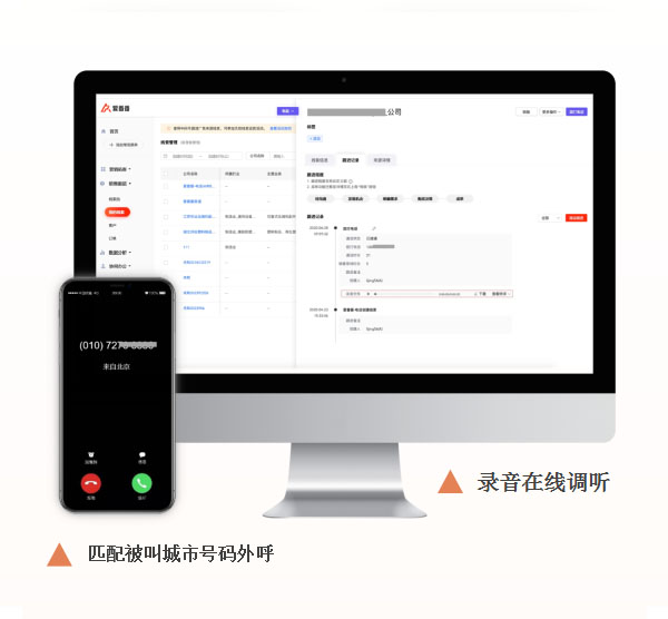 中间号码地域可选,支持自动匹配被叫城市号码外呼,通话 结束后还可发送挂机短信,大幅度提升接通率和通话效果 全程录音,支持在线调听、批量下载;录音支持自动转文字, 异常内容质检、标记提醒,帮您管控通话过程 支持PC端发起拨打请求,APP同步完成呼叫,提高拨打效率